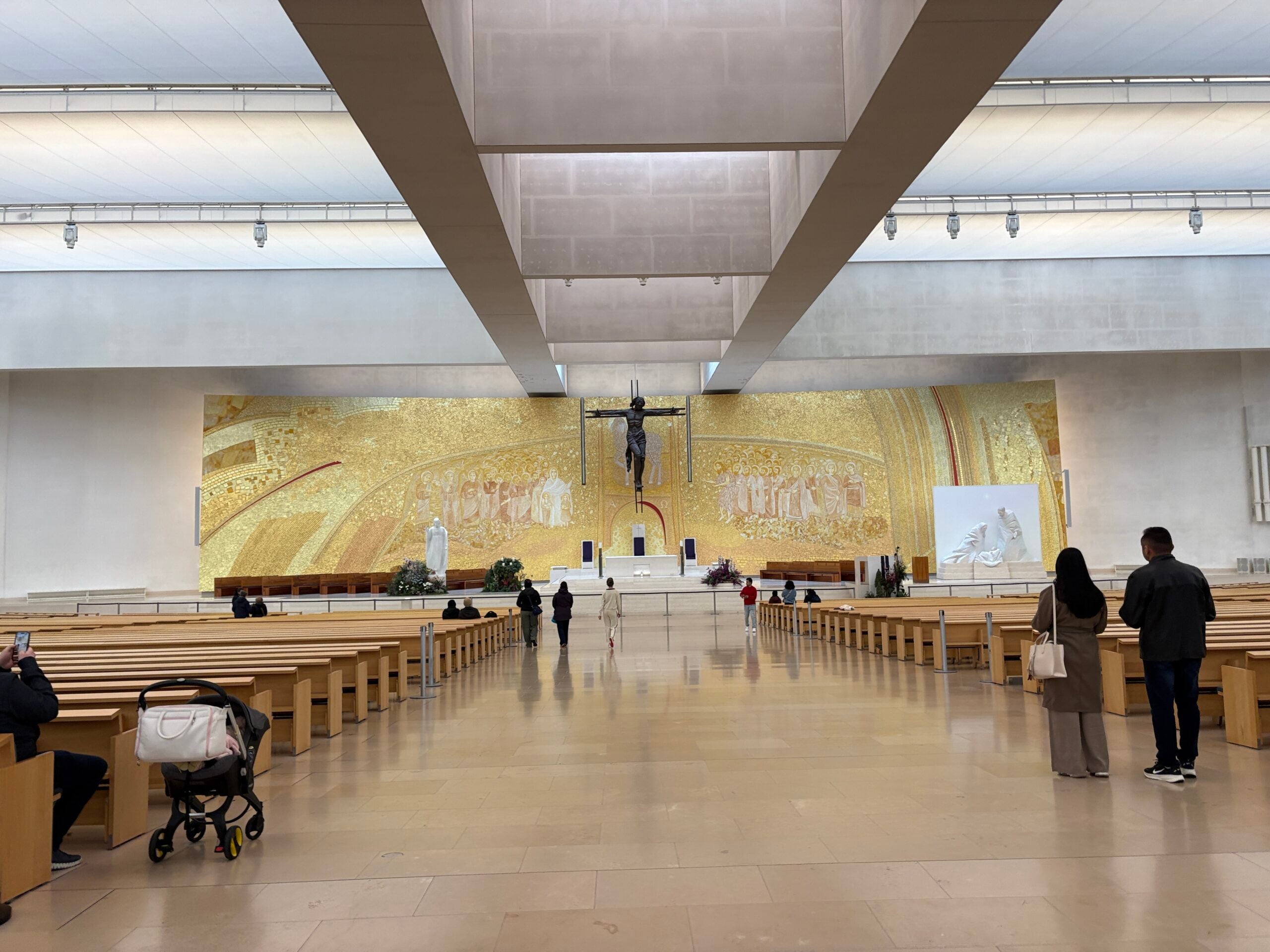 At the sanctuary, you can witness the large torch-lit processings led by Cardinals and Bishops. You can also light a candle for a loved one and say a prayer. We recommend standing in the middle of the sanctuary square to witness the beauty of the Basilica of Our Lady of the Rosary. This square is larger than the one in the Vatican!