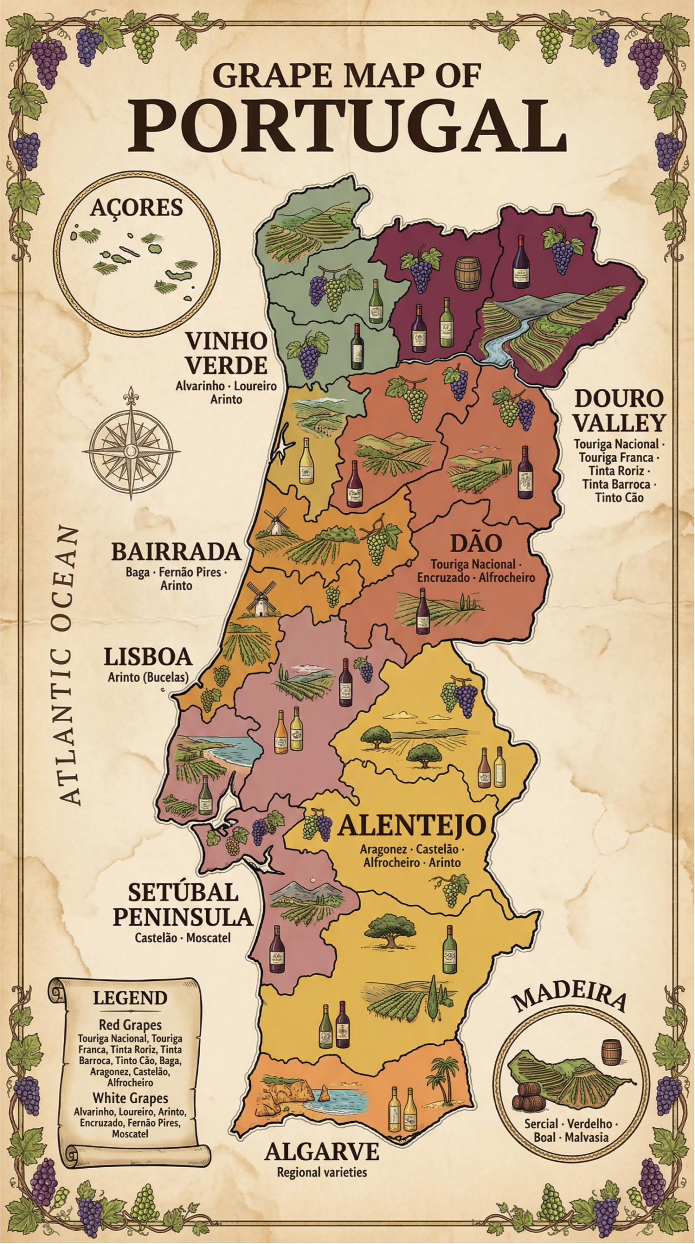 Portugal is one of the most exciting wine-producing countries in the world, and a big part of what makes Portuguese wine so special is the extraordinary diversity of native grape varieties that grow here. With over 250 indigenous grape varieties recognized across the country, Portugal has one of the richest viticultural heritages on the planet! Trust us when we say that there is something for oenophile in Portugal, and understanding Portuguese grapes is the key to unlocking a whole new world of flavor.