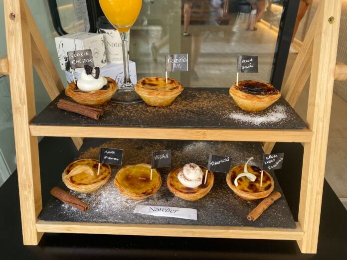 Nat’Atelier is one of Lisbon’s newest pastry spots and has redefined the pastel de nata for modern times. Their version includes creative flavor twists such as apple cinnamon, crème brûlée, tiramisu, cookie cheesecake, and white chocolate macadamia. The café even offers a special experience if you order the crème brûlée tart. A staff member will caramelize the sugar with a tiny blowtorch at your table. It’s part patisserie, part performance art!