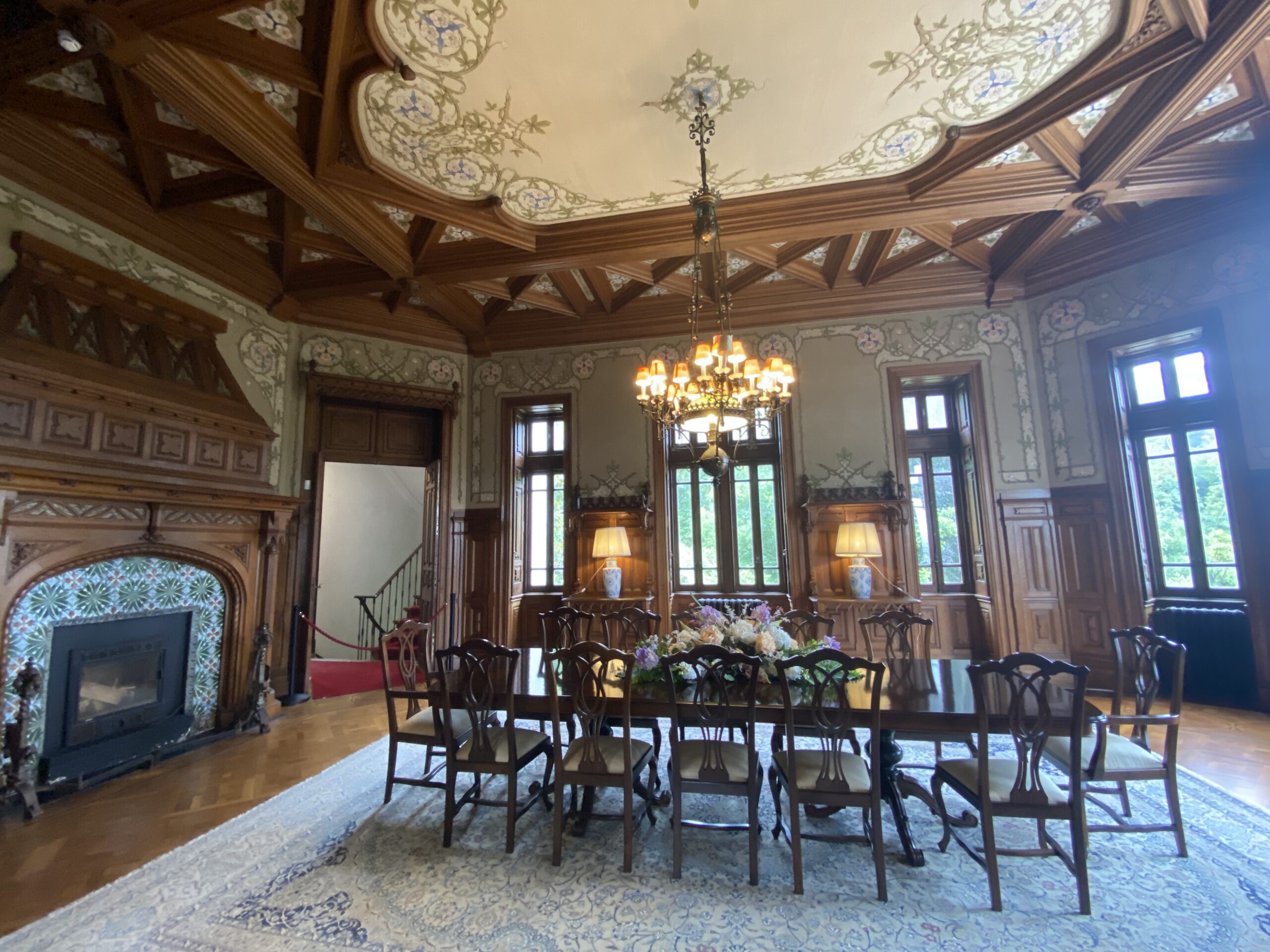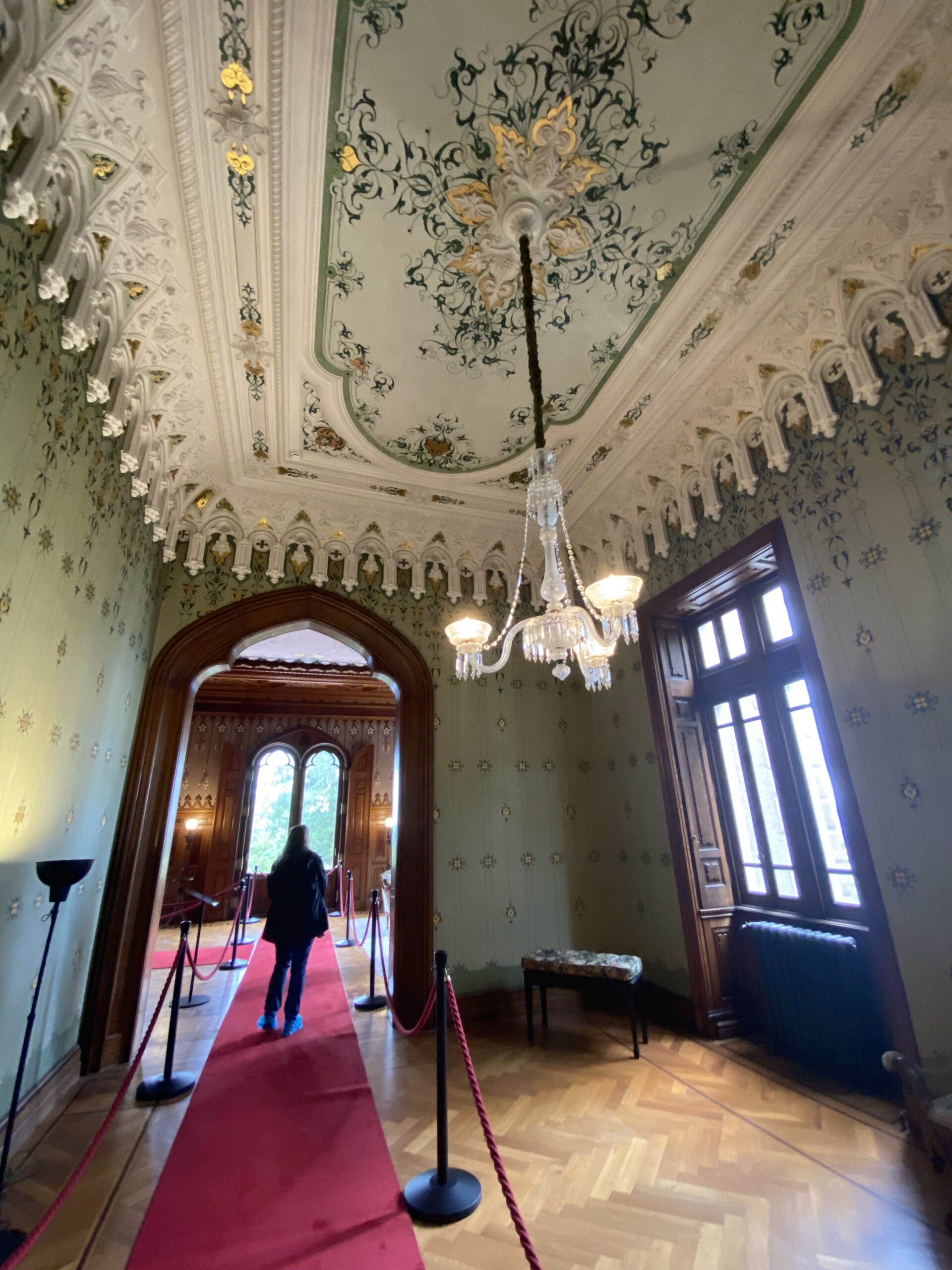 The palace remained private until 2022, when it opened to the public following an extensive two-year restoration. Its interior, preserved to reflect its 19th-century origins, features original frescoes, stuccoes in the Music Room, and naturalist paintings by Luigi Manini, the Italian architect and set designer who also worked on Quinta da Regaleira. Additionally, the ceilings painted by Paul Baudry, famous for his work in the Paris Opera, and pieces by Bordallo Pinheiro, a renowned Portuguese ceramist, contribute to its theatrical ambiance.