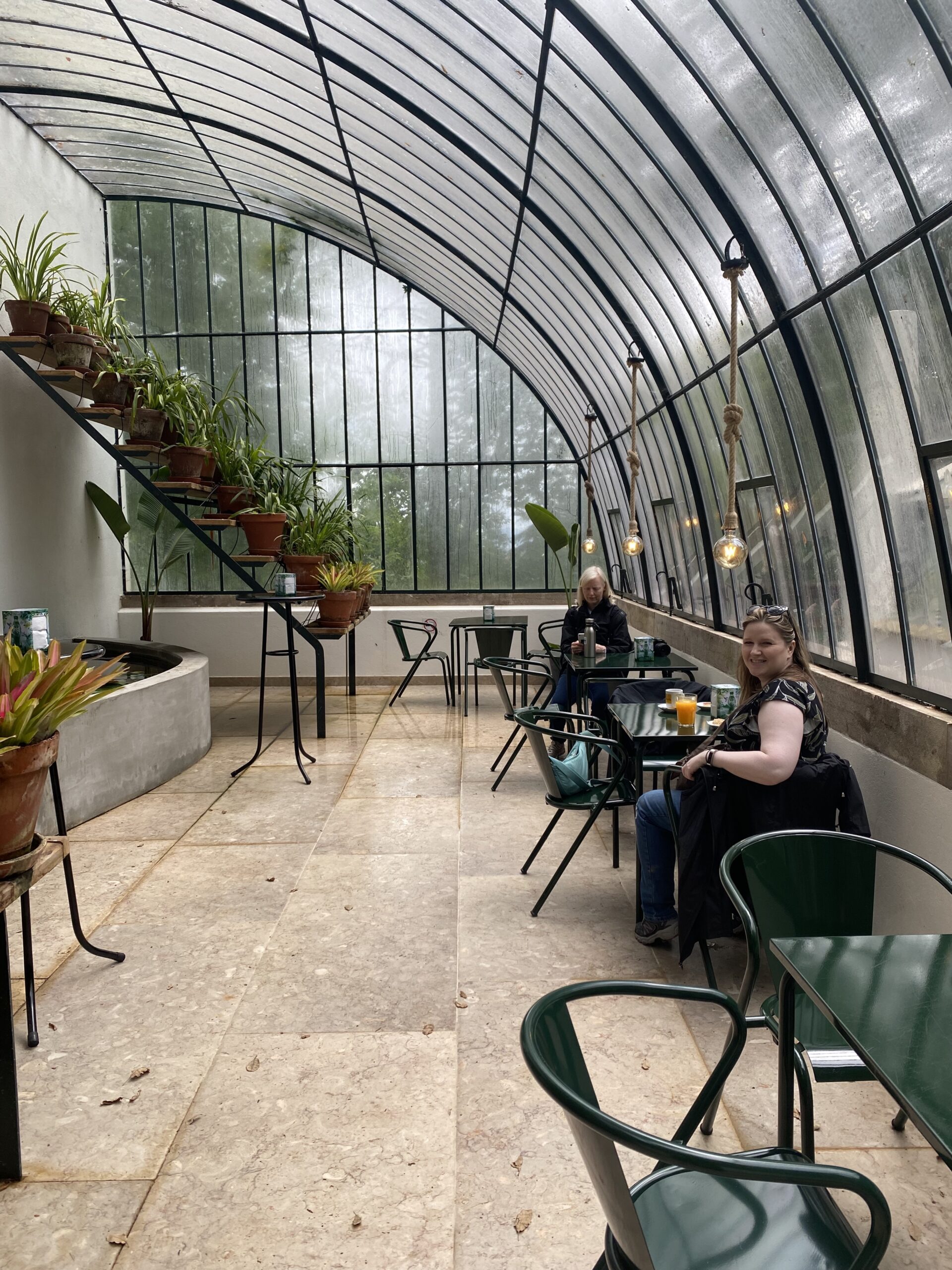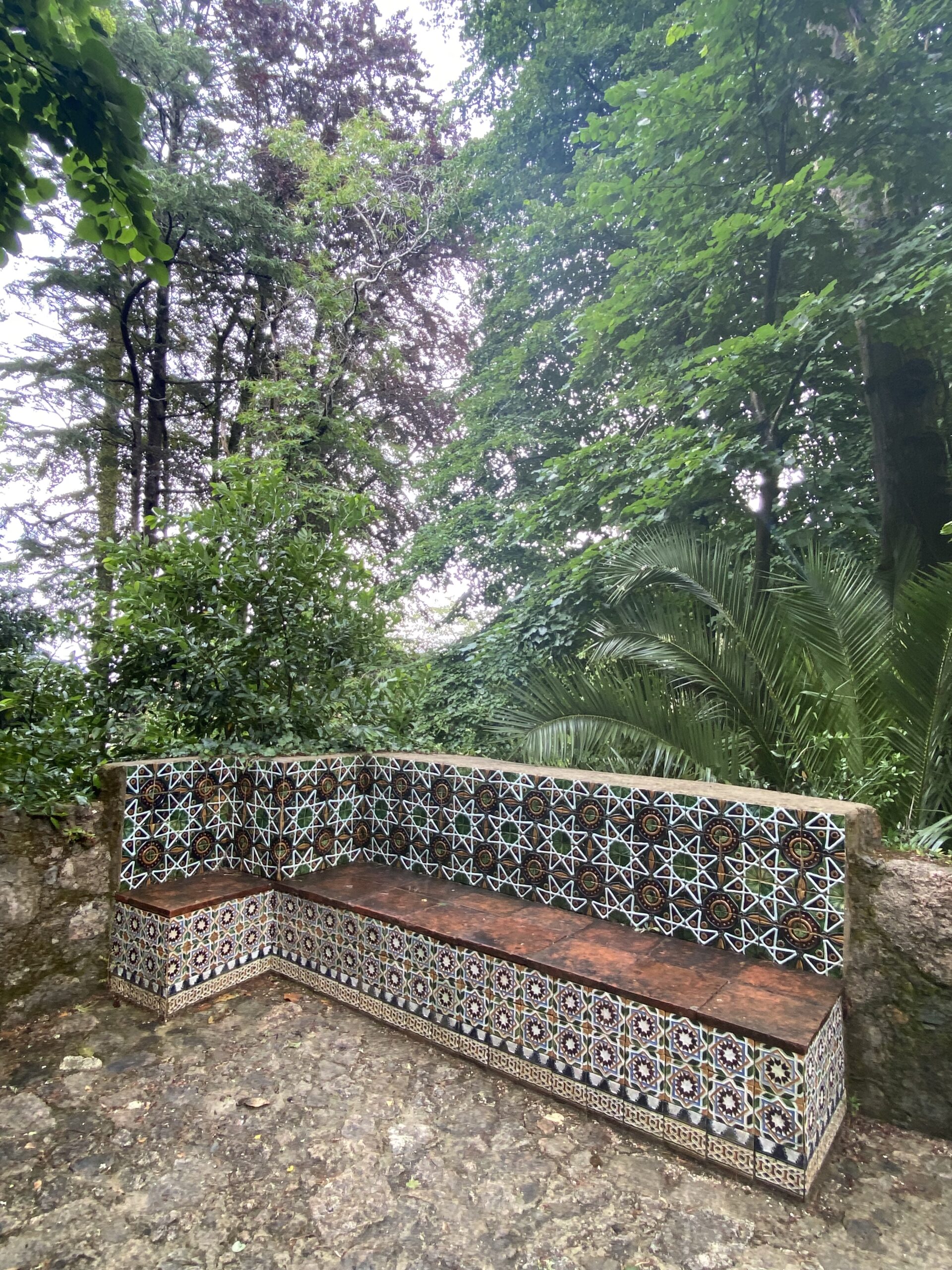Exteriors of Biester Palace from the gardens, hidden in Pena Park, Photo by Becky GillespieThe beautiful gardens of Biester Palace, Photo by Becky GillespieMosaic bench in the Biester Palace gardens by Bordallo Pinheiro, Photo by Becky GillespieEnjoy your tea in the Biester Palace greenhouse, Photo by Becky Gillespie