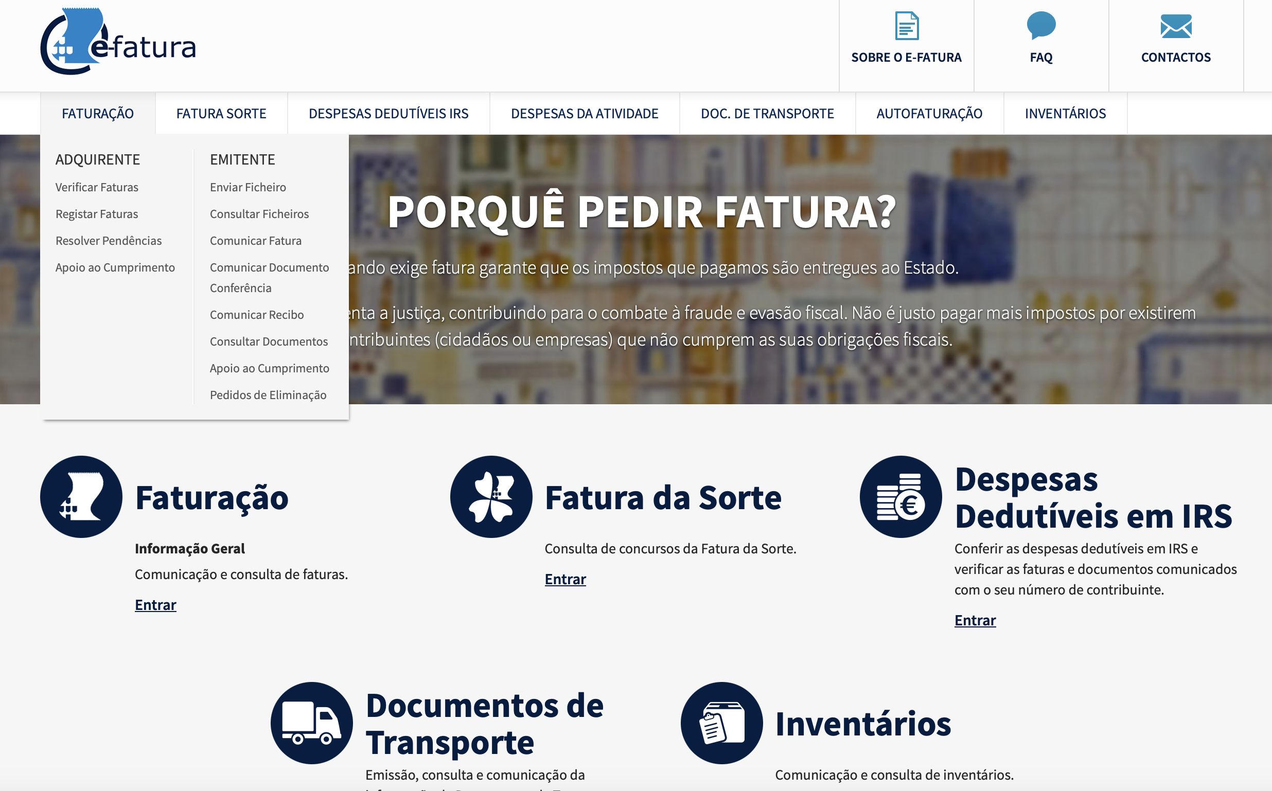 When you log-on to the website, click the first tab on the left called “Faturação.” You will then see a drop-down list and click “Adquirente” here. You will then be prompted to insert your NIF number and the same password that you use to access the Finanças website. Once you are logged in, you can see all the different categories of expenses on the main dashboard.